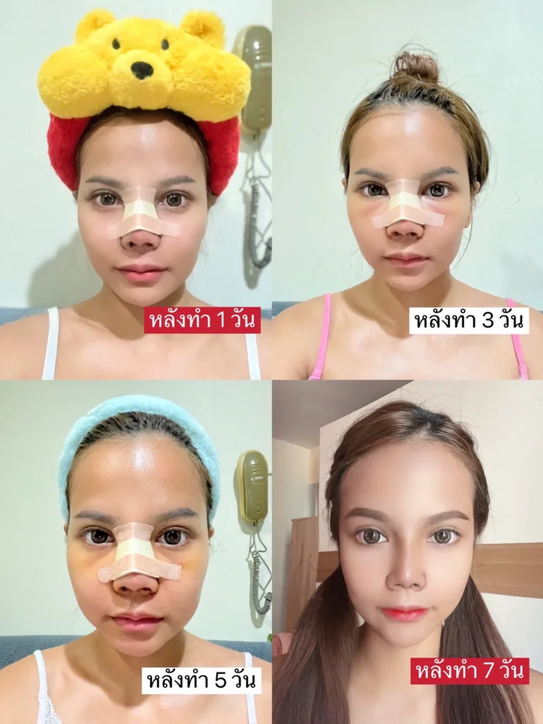 หลังทำมา 1-7 วัน มีบวมช้ำแค่ช่วงแรกๆ ไปทำงานได้ปกติไม่ต้องพักฟื้นนานเลยย