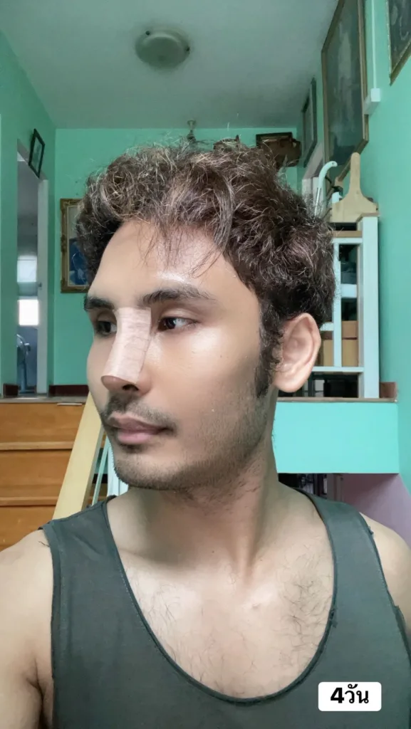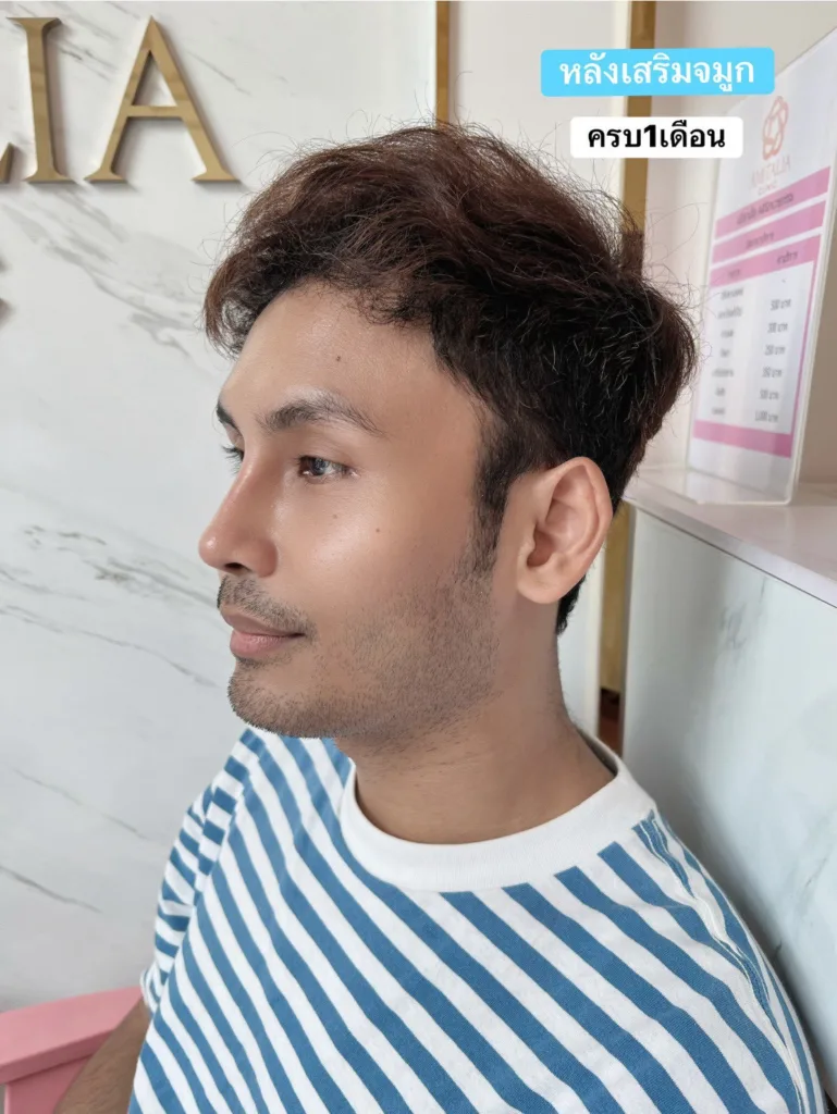 หลังทำทันที สันจมูกดูคมชัด หน้าตรงไม่ดูแบน ดูมีมิติมากขึ้น ทรงรับกับใบหน้า