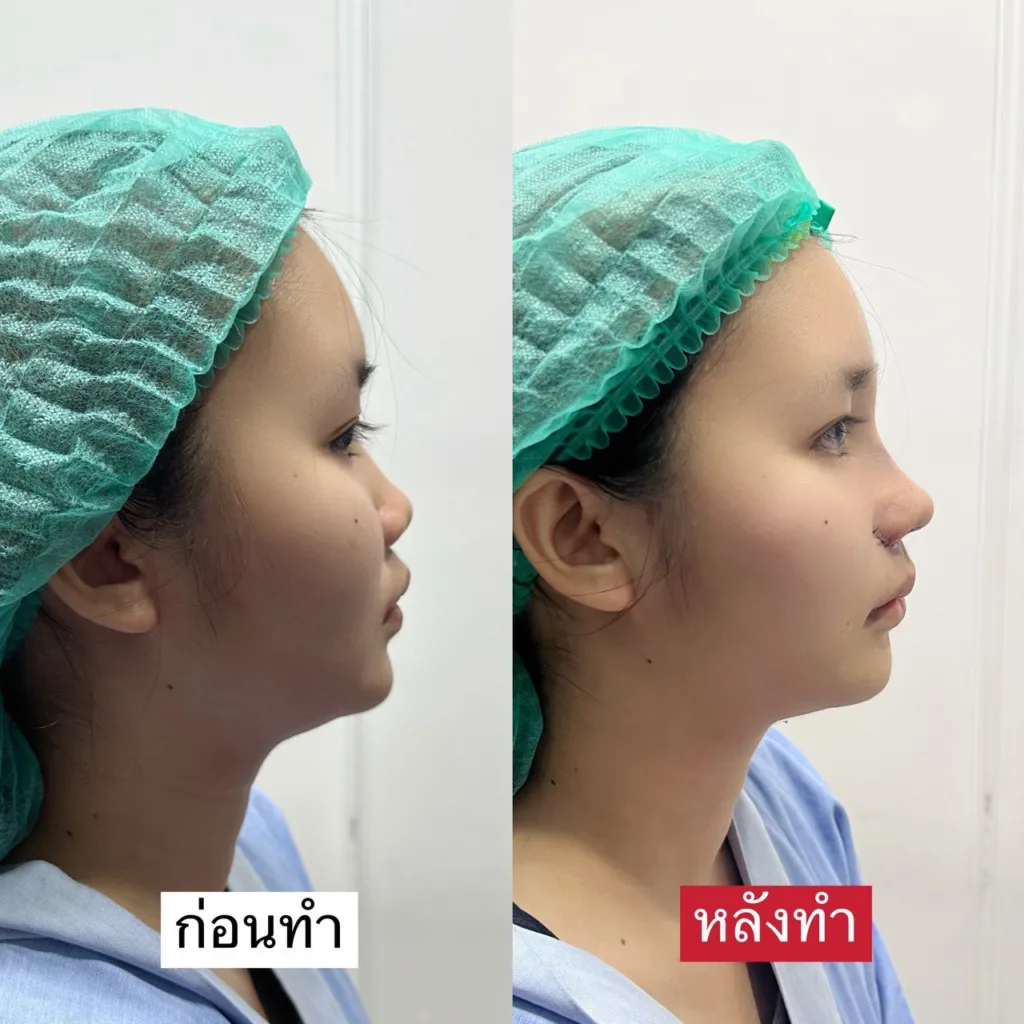 ก่อนทำและหลังทำเสร็จทันที หน้าเปลี่ยนแบบเห็นได้ชัดเจนมากค่ะ เรามีปัญหาคือเป็นคนที่ไม่มีจมูกเลย ปลายจมูกบาน ทำให้หน้าตรงดูไม่มีมิติ ถ่ายรูปไม่ขึ้นกล้อง