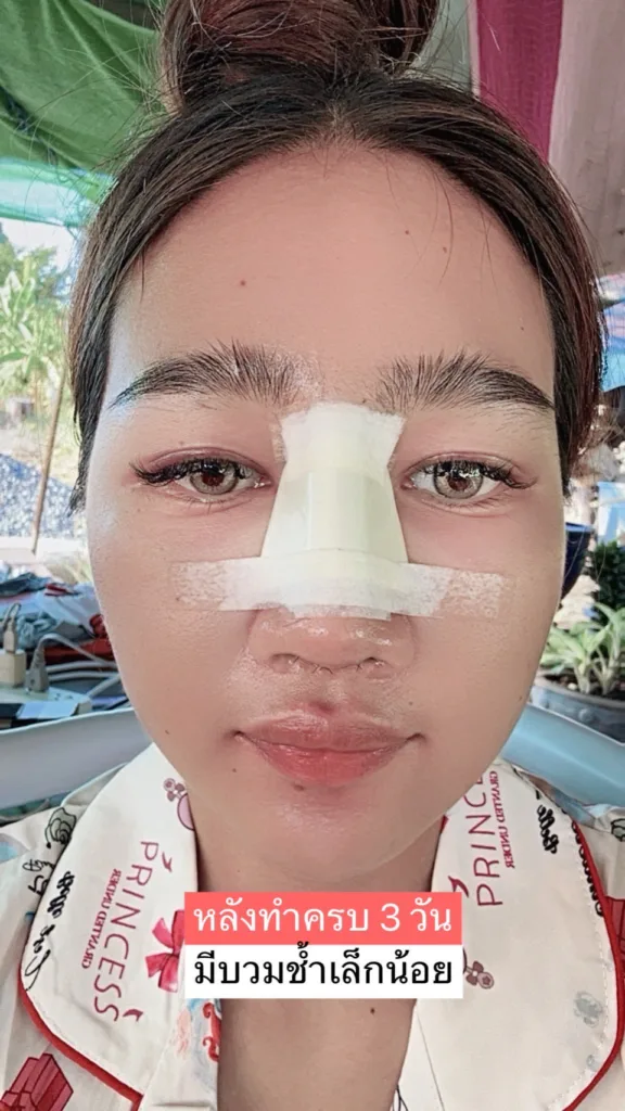 หลังทำครบ 3 วัน มีบวมช้ำเล็กน้อย แต่สามารถใช้ชีวิตประจำวันได้ปกติเลยค่ะ💗