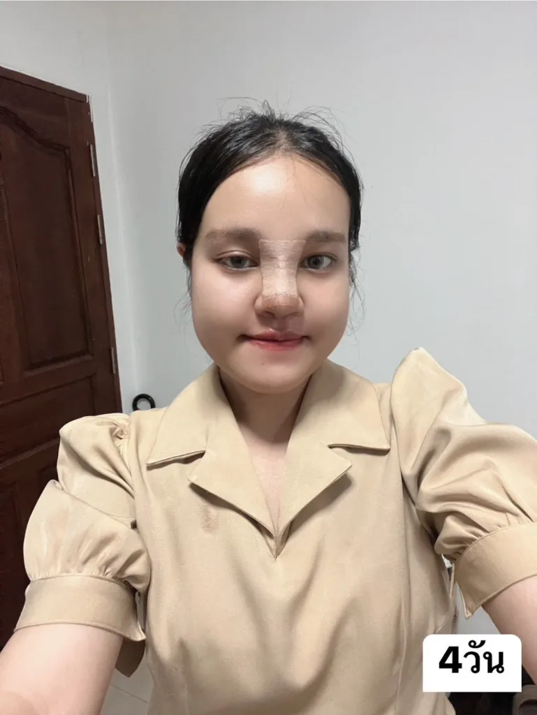 หลังเสริมจมูกวันที่ 4