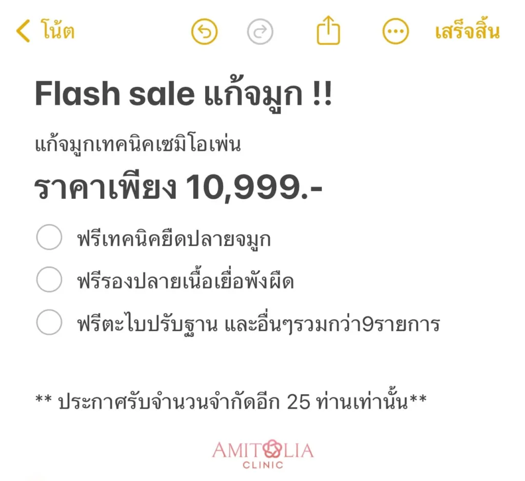 แก้จมูก 10,999 บาทจากราคา 25,999 บาท