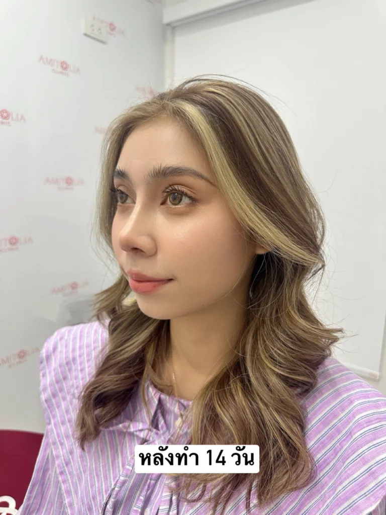 หลังทำทันที สันจมูกดูคมชัด หน้าตรงไม่ดูแบน ดูมีมิติมากขึ้น ทรงรับกับใบหน้า